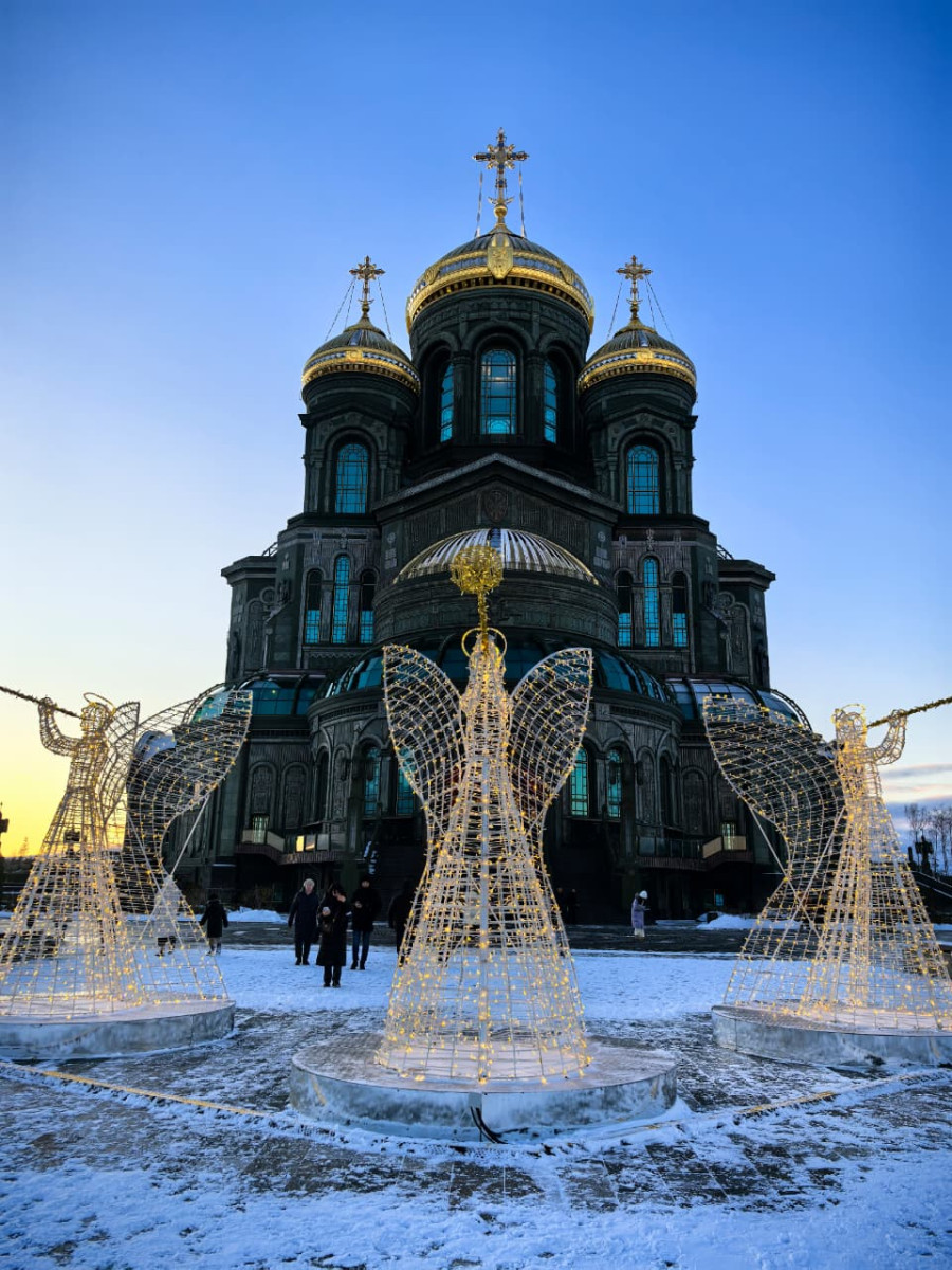 Зимой в Кубинке особенная атмосфера, парк сияет тысячами огней, а перед храмом Вооружённых Сил России будет стоять шикарная ёлка и по традиции зальют каток, на котором прокатиться сможет бесплатно  абсолютно